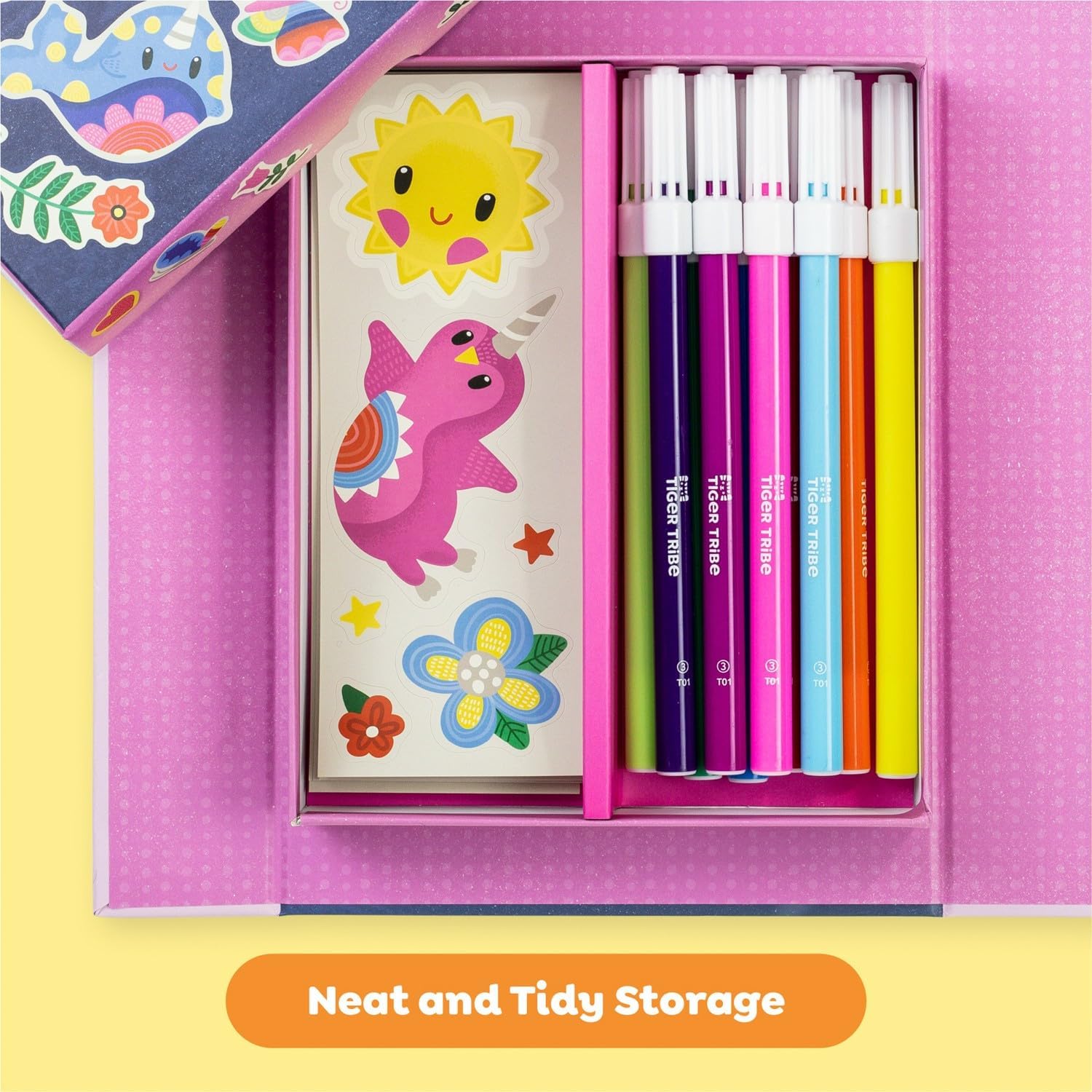 - Εσωτερικό κουτί με θήκες για τους μαρκαδόρους και τα αυτοκόλλητα