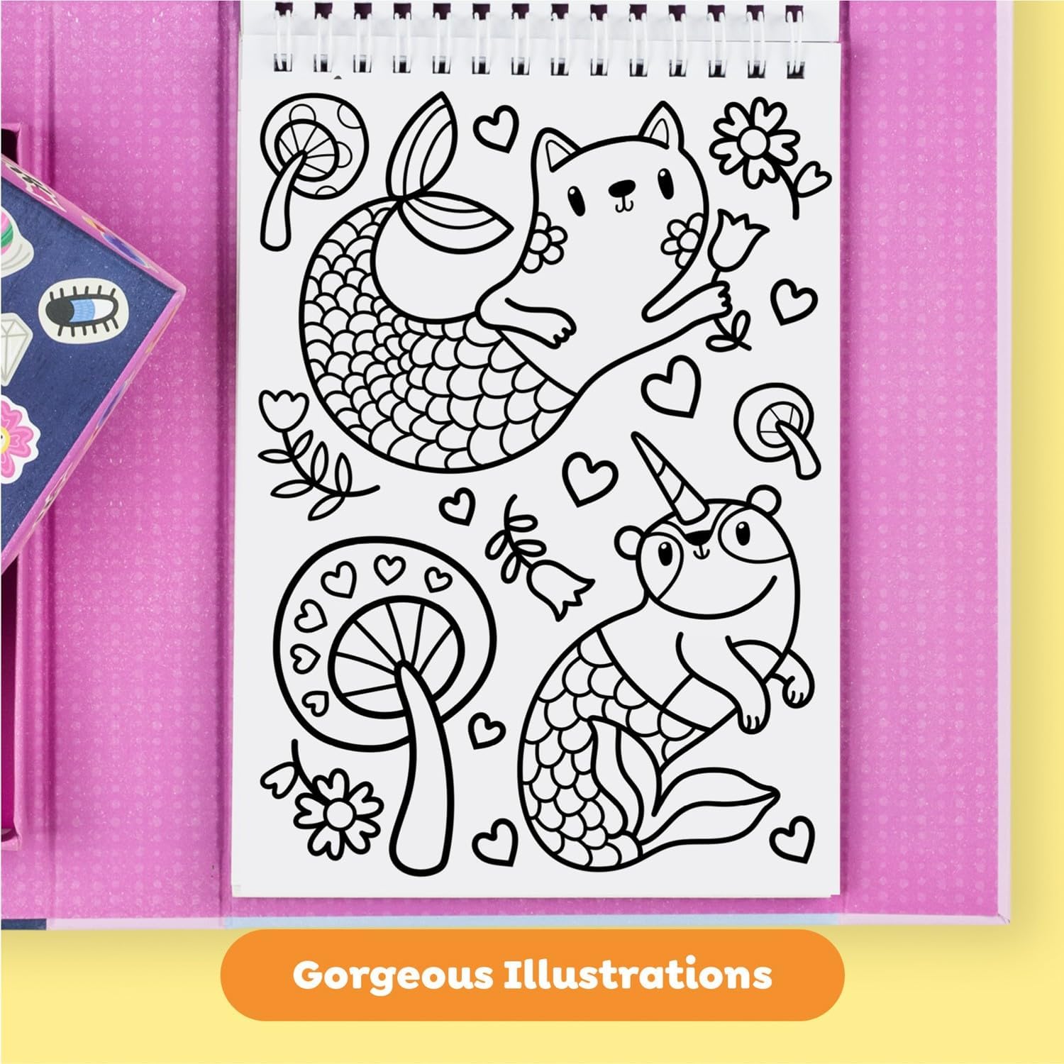 Χρωματίστε με 10 μαρκαδόρους και διακοσμήστε με αυτοκόλλητα τις εικόνες με τους μονόκερους, τις γοργόνες και τα άλλα μαγικά πλάσματα!